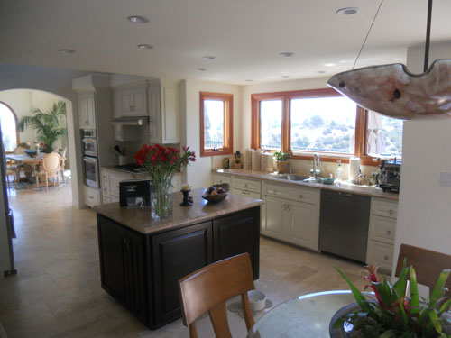 The project provided a complete remodel and addition of an existing two-story, single-family home on a hillside lot. The entire first floor was rebuilt to include a new entry way and stair, a large kitchen with nook, a bedroom, conversion of the existing garage into a master suite, and a 700 s.f. addition of a new family/dining room overtop of a new 3 car garage and storage room. The second floor was remodeled to provide a guest suite and office loft. The area of the home was more than doubled and rooms were remodeled to provide amenities for modern living.